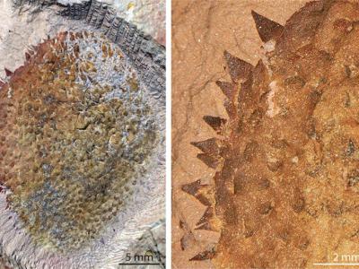 寒武纪多刺世山虫(Shishania aculeata)的锥形骨板和细微管状构造。图片:云南大学...