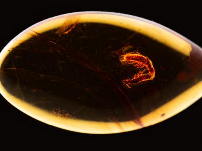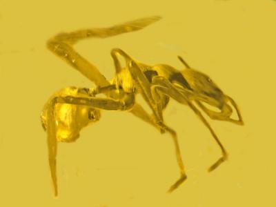 3800万年前的琥珀中保存了两只准备交配的白蚁。(图片来源:AlešBuček博...