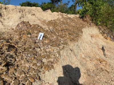 撞击地点西北偏西约60公里处露头中的喷出物砾石。鸣谢:凯瑞·西(化石网cnfossil.c...