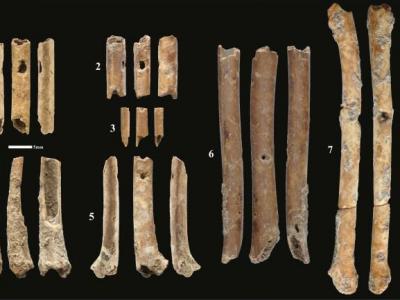 研究人员在以色列北部发现12000多年前由鸟类骨骼制成的笛子。署名:劳伦·达文(化石...