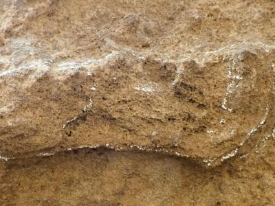 一块哺乳动物头骨化石,牙齿窝里的沉积物,原来是史前蜜蜂筑的巢穴。图片来源:拉萨...