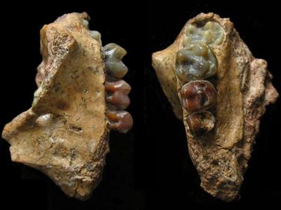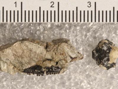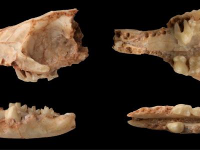 一块哺乳动物头骨化石,牙齿窝里的沉积物,原来是史前蜜蜂筑的巢穴。图片来源:拉萨...