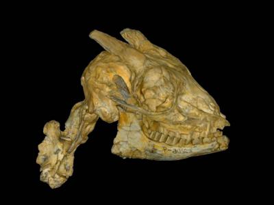 一块哺乳动物头骨化石,牙齿窝里的沉积物,原来是史前蜜蜂筑的巢穴。图片来源:拉萨...