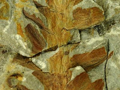 “三叠纪跨界者”标本。(中科院南古所供图)“球果”的“苞鳞”几乎完全包裹住了其...