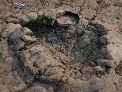 英国南威尔斯珀纳斯沙滩发现距今2亿年的早期蜥脚类恐龙足迹化石(化石网报道)据东...