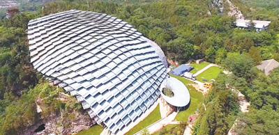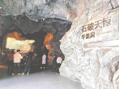 位于池州市东至县的华龙洞遗址陈列馆。记者 张理想 摄华龙洞遗址陈列馆展出的古人类...