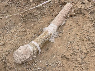 3月15日,海南藏族自治州同德县出土史前象牙化石。象牙化石已经被工作人员保护,准...