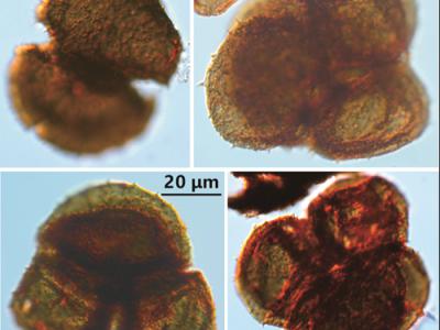二叠纪-三叠纪之交陆相地层中的石松类孢子四分体,来自岩心ZK4703(楚道亮 供图)(...