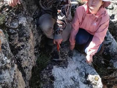 徐星在野外观察恐龙化石。上图:“政和八闽鸟”化石标本。下图:热河生物群与燕辽生...