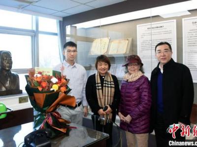 杨钟健纪念展室在中科院古脊椎所内建成开放,杨钟健先生家属代表献花并合影。 中新...