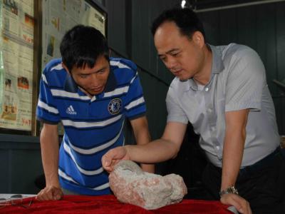 徐星在野外观察恐龙化石。上图:“政和八闽鸟”化石标本。下图:热河生物群与燕辽生...
