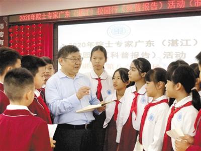 11月16日,科普专家向同学们介绍科学知识。 记者 林石湛 摄(化石网报道)据湛江日...