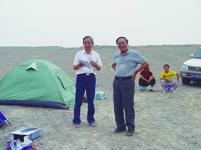 2007年,陈旭院士(右)、戎嘉余院士在新疆库鲁克塔格无人区开展含油气地层考察第一...