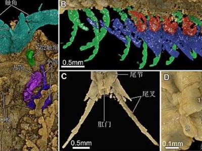 资料图:使用高精度显微CT显示的寒武纪多节耳材村虫身体各部分...
