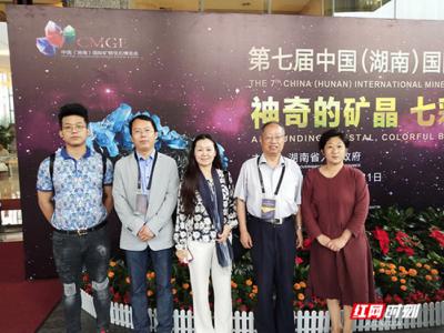 单华春(中)在第七届中国(湖南)国际矿物宝石博览会现场。(...