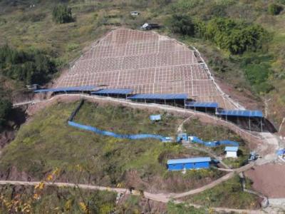化石墙及其周边环境航拍图工作人员在化石墙表面喷涂保护试剂正...