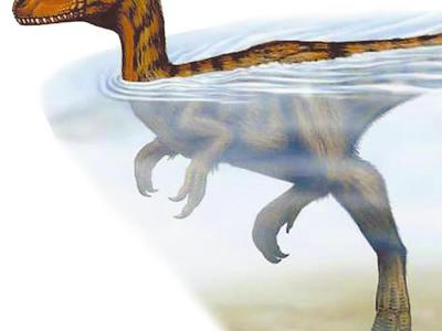 对中国早白垩世(约1.25亿年前)一只幼年董氏豪龙的艺术复原。图片来源:法比奥·马...