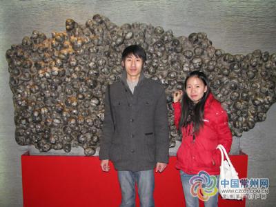 雷倩萍和先生刘青在北京自然博物馆雷倩萍的十字绣作品:五亿年...