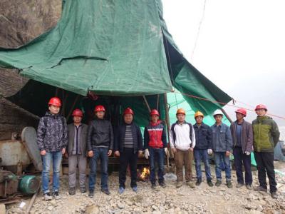 科研人员与钻井工程队开钻合影科研人员在钻井现场完成随钻编录工作云南大关黄葛1井...
