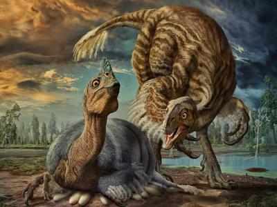 对中国早白垩世(约1.25亿年前)一只幼年董氏豪龙的艺术复原。图片来源:法比奥·马...