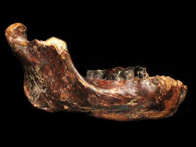 台湾自然科学博物馆内展出“澎湖原人”下颚骨化石(中国化石网配图) (中国化石...