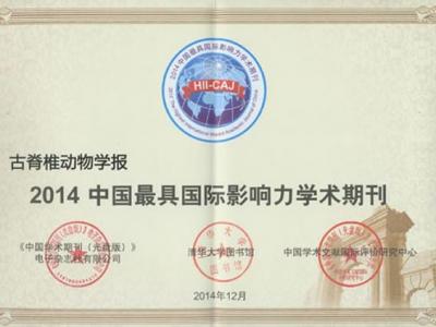 《古脊椎动物学报》获得“中国最具国际影响力学术期刊”称号 (中国化石网报道)...