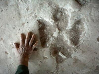 2007年綦江绝壁上发现的疑是恐龙足迹 此前发现的恐龙脚印就藏在这一绝壁上的横...