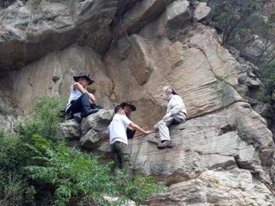 徐星在野外观察恐龙化石。上图:“政和八闽鸟”化石标本。下图:热河生物群与燕辽生...