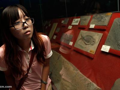 北京大学地质博物馆,下午闭馆前,薛逸凡在寻找自己制作的化石标本,“太小了,不...