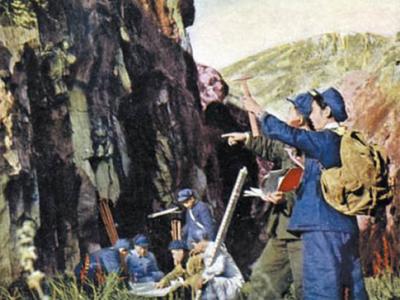 解放初期中国的地质工作者进行野外考察(Nature,506:32) (中国化石网)据中国...