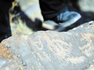 躲过人为损坏的大麦地岩画因为风蚀沙侵,岩石出现裂缝,一些岩画表面已经脱落 ...
