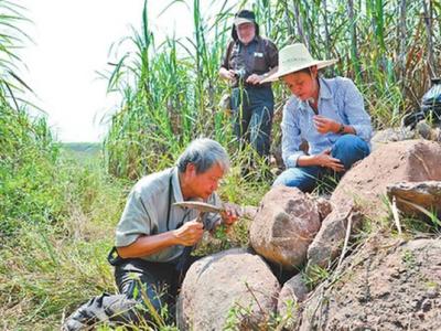 古生物学家在广西扶绥考察恐龙化石遗址 (中国化石网)据左江日报:10月9日,古...