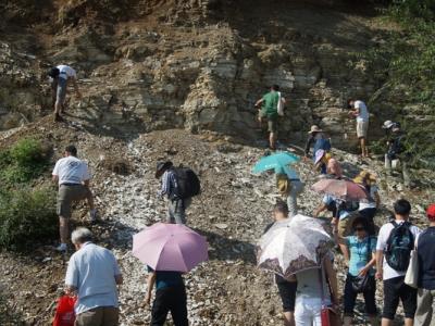 参观相关地层剖面 中国科学院南京地质古生物研究所王海峰副所长主持会议 “...