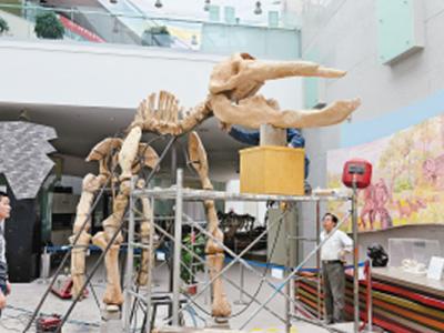 距今一千多万年铲齿象化石亮相陕西自然博物馆 昨日,一个令人仰视的“大家伙”亮...