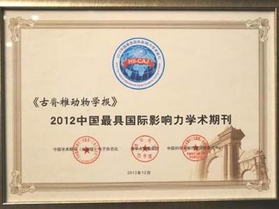 《古脊椎动物学报》入选2012“中国最具国际影响力学术期刊”名单 2012年12月26日...