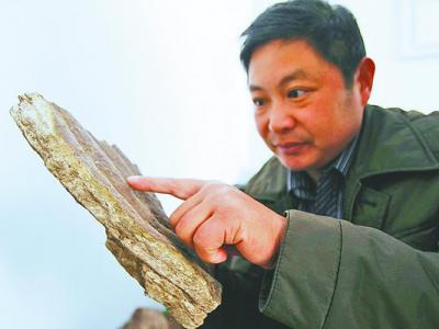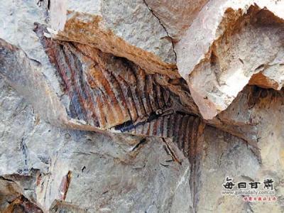 甘肃白银发现大面积距今两亿年古植物化石群 炸山炸出的石头上有树叶般的花纹,经...