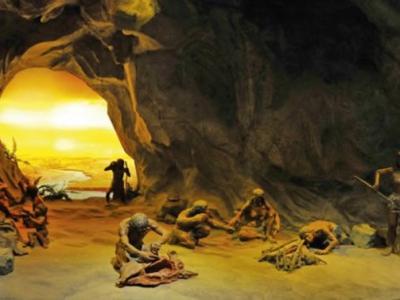山顶洞人生活场景塑像 打制石器的猿人 远古人类的食谱 寻找食物是动物的本能...