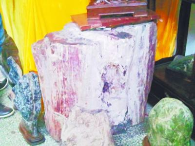 在青岛一家奇石店里,一块来自本地的木化石摆在隐蔽角落销售。 网上销售木化石...