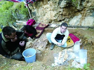 科学家卫奇(左一)和韩国学者共同考察泥河湾遗址群 站在河北阳原县的小长梁遗址...