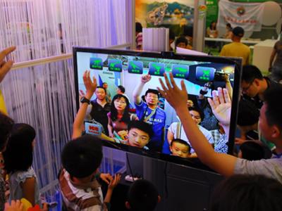 体验“恐龙复活记”互动游戏 伸出手指,隔着空气,对准大屏幕上的图标一点,无需...