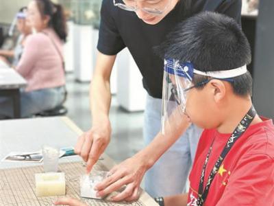 小朋友体验化石翻模的乐趣 (英良石材自然历史博物馆 供图)(化石网cnfossil.com)...