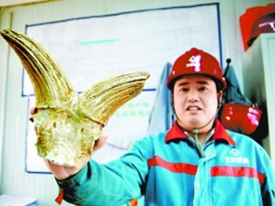 北京修地铁挖出260万年前岩羊化石 “这就是挖出的化石。”昨日下午,几名北京城...