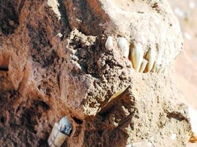 甘肃和政发现剑齿虎头骨化石 11月25日,甘肃和政古生物化石国家地质公园桦林古动...