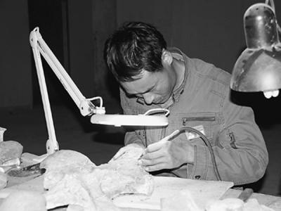 罗加有在修复恐龙化石 他们,用一双巧手,让恐龙等曾经统治这个星球的古老生物得...
