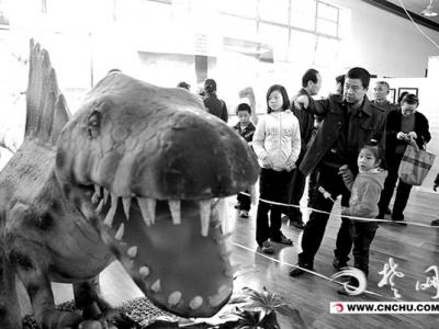恐龙仿真模型荆州科技馆巡展 “宝贝,看这,这个是恐龙蛋。”29日,恐龙标本全国...