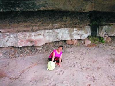 给了“跑路费”的游客便可以随便触摸恐龙脚印 莲花保寨的地面上有大量恐龙脚印...