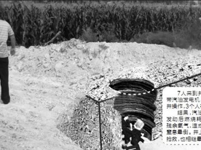 事发朝阳北票市一荒置深井,井口现已被填平 有村民描述,一伙人带汽油发电机在井...