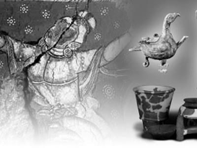 照片为入选2010年“全国十大考古新发现”的考古遗址出土的精美文物拼图,从左至右...