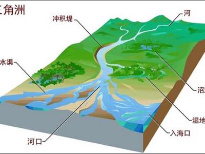 河流冲击形成的三角洲地貌 河流地貌 fluvial landforms 河流作用于地球表面,...