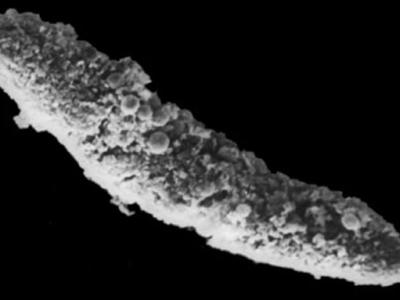 可能是蹄兔的对接拖拽痕迹;中心右侧的特征被解释为可能是粪石(粪便化石)。 (图片...